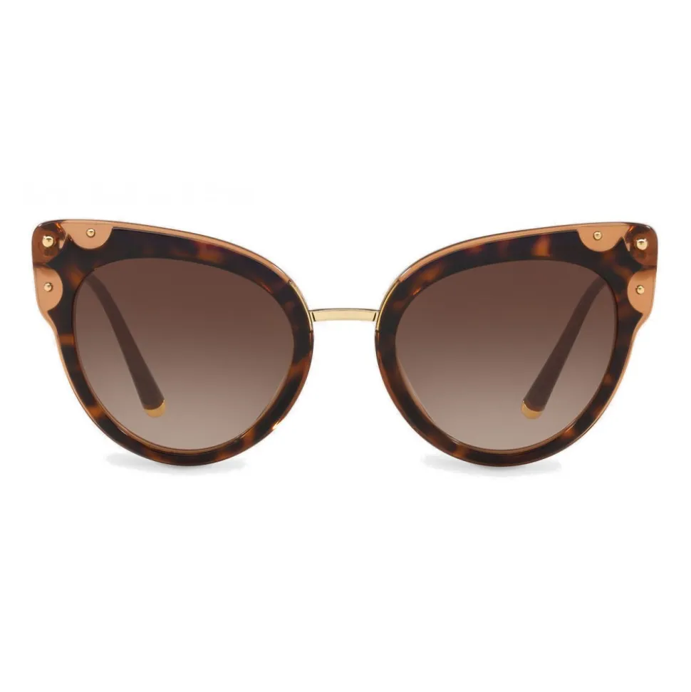 Cat-eye sunglasses in acetate embellished with metallic details and a metal bridge. Dolce & Gabbana logo finely engraved on metal temples.