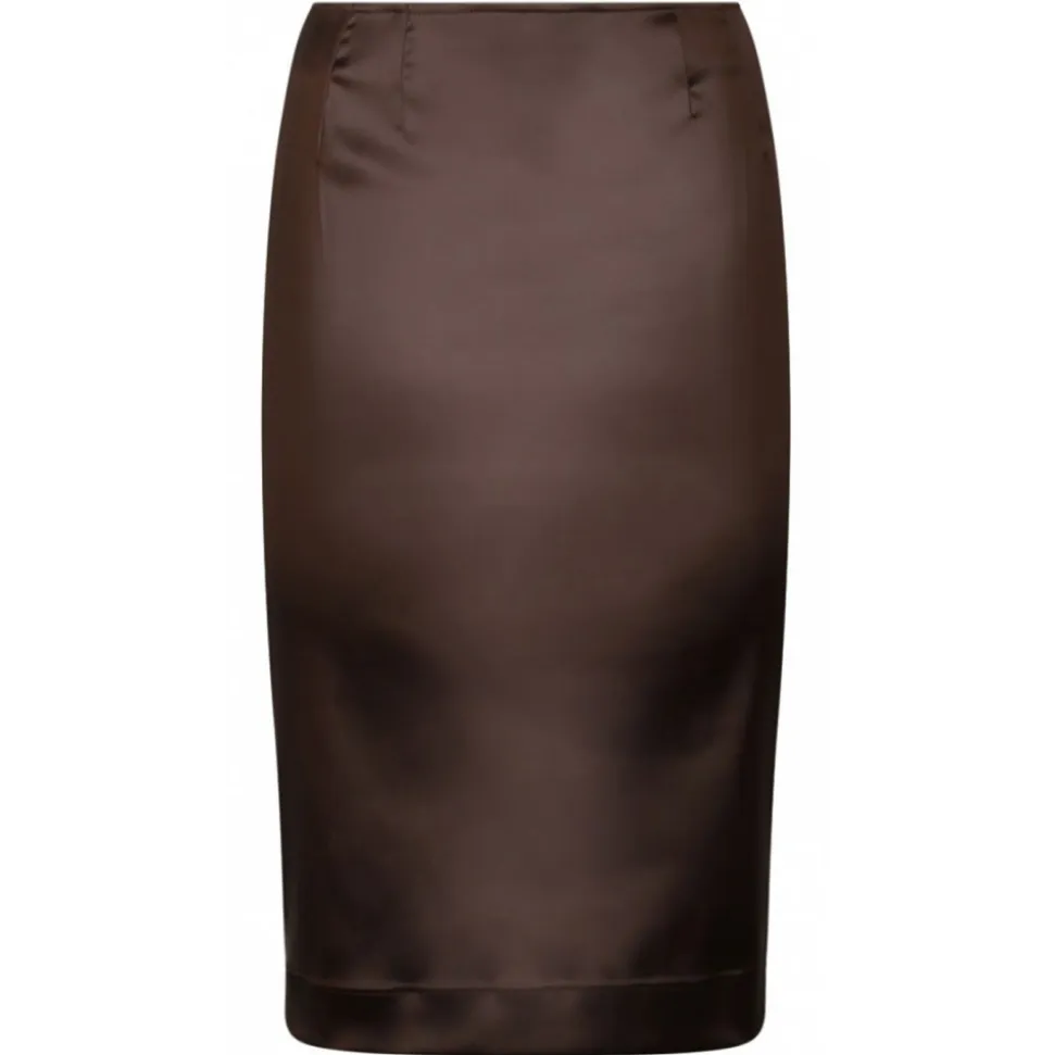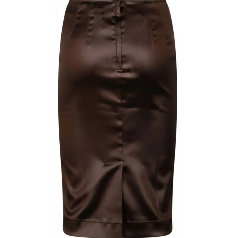 Dolce & Gabbana Chesnutt Brown Pencil Skirt. Chesnutt brown midi pencil skirt, glossy finish, high waist, straight hem, below knee length.