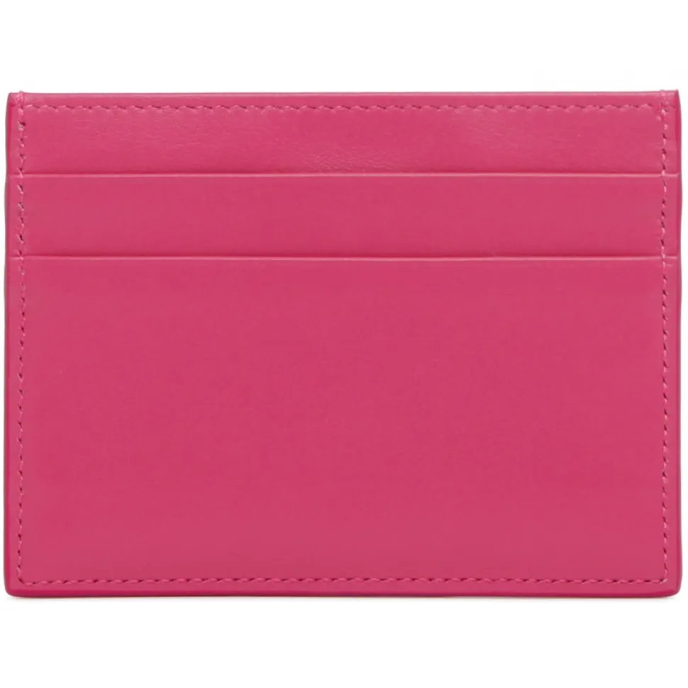 Dolce & Gabbana Hot Pink Calf Leather Embossed Logo Cardholder. Hot pink calf leather cardholder, embossed logo to the front, card slots, rectangle frame.