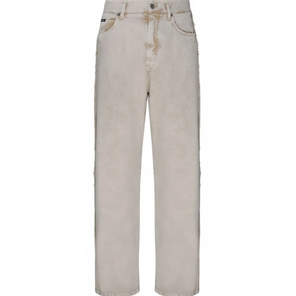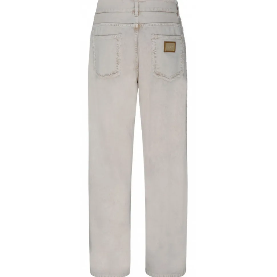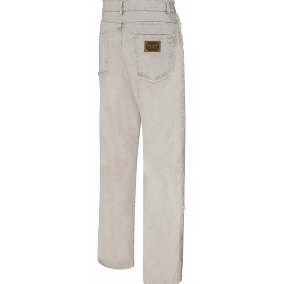 Dolce & Gabbana – Light Beige Cotton Frayed Trim Jeans – Dolce & Gabbana Exclusive Luxury Collection