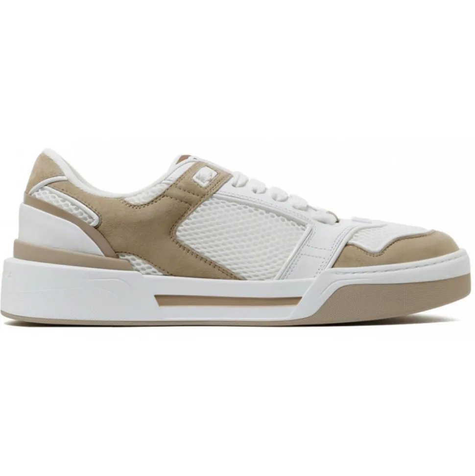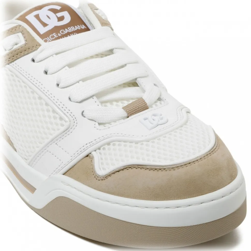 Dolce & Gabbana New Roma Sneakers. White New Roma sneaker in mesh with suede and calfskin details, flat laces, branded tongue. Calfskin footbed with branded label, branded rubber sole.