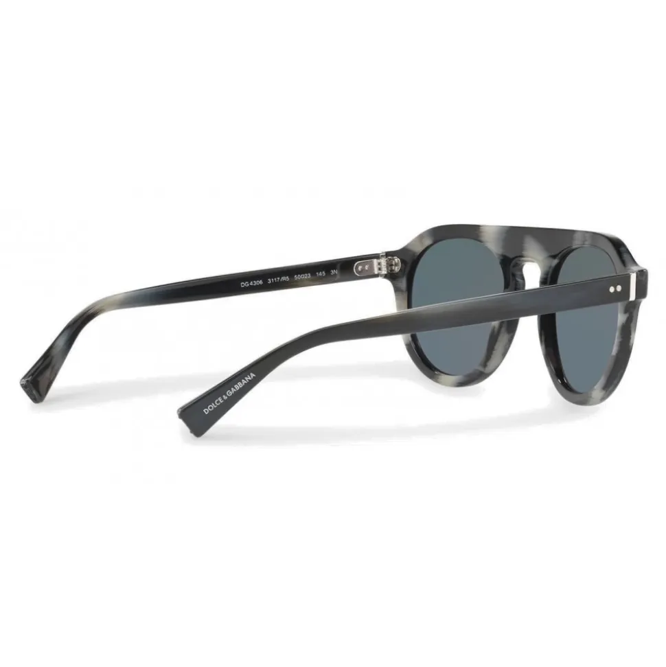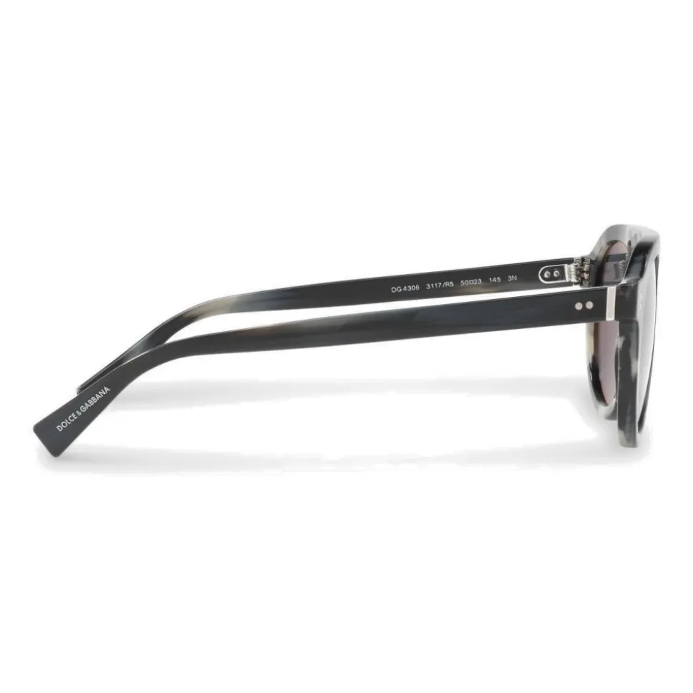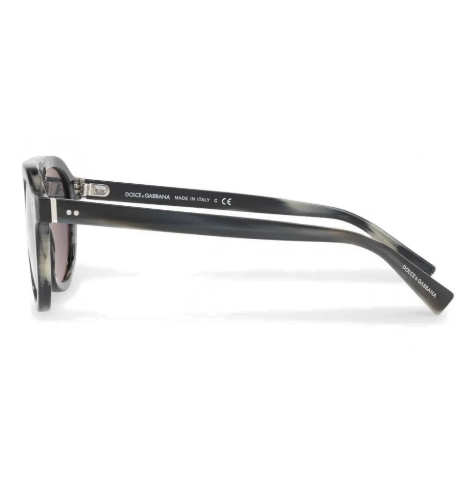 Panthos sunglasses with an acetate frame with bold lines. The model is distinguished by the keyhole bridge topped by a front bar. It is embellished with rivets and crystal lenses. The temples are personalized with the Dolce & Gabbana logo and the metallic detail on the terminal.