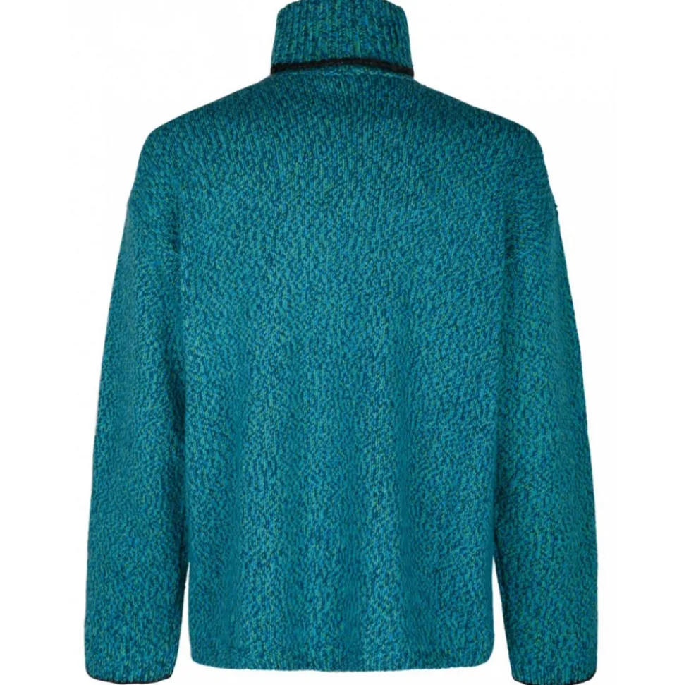 Dolce & Gabbana Sea Green and Black Wool Blend Logo Jumper. Sea Green and black wool blend jumper, mange effect, intarsia knit logo, roll neck, long sleeves, ribbed cuffs and hem, straight hem.