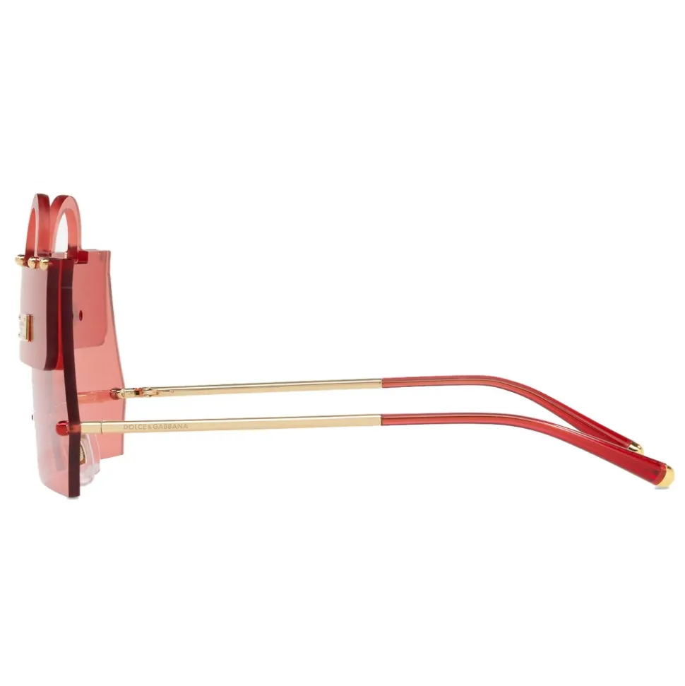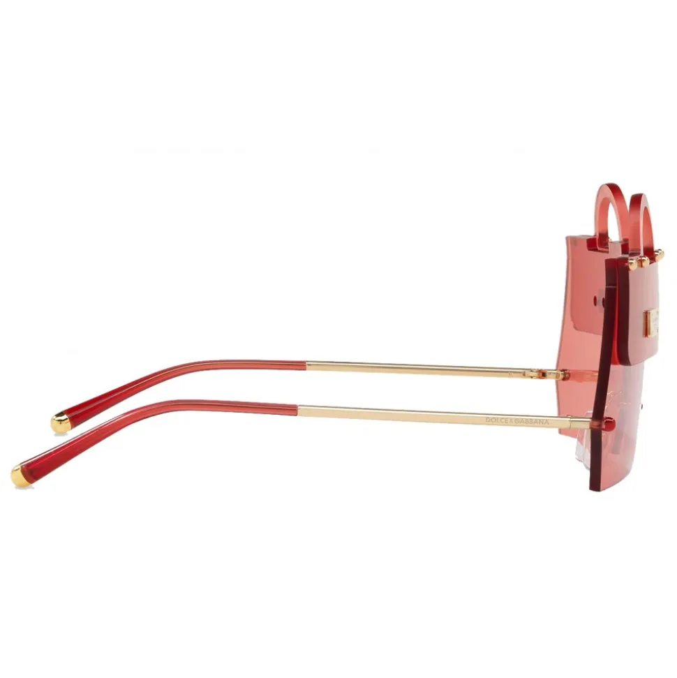 Sunglasses in metal inspired by the iconic Sicily Dolce & Gabbana bag. The front is characterized by transparent red lenses and the Dolce & Gabbana logo finely engraved on the metal plaque. The nose pads are adjustable for perfect fitting and greater comfort.