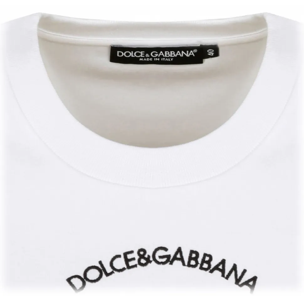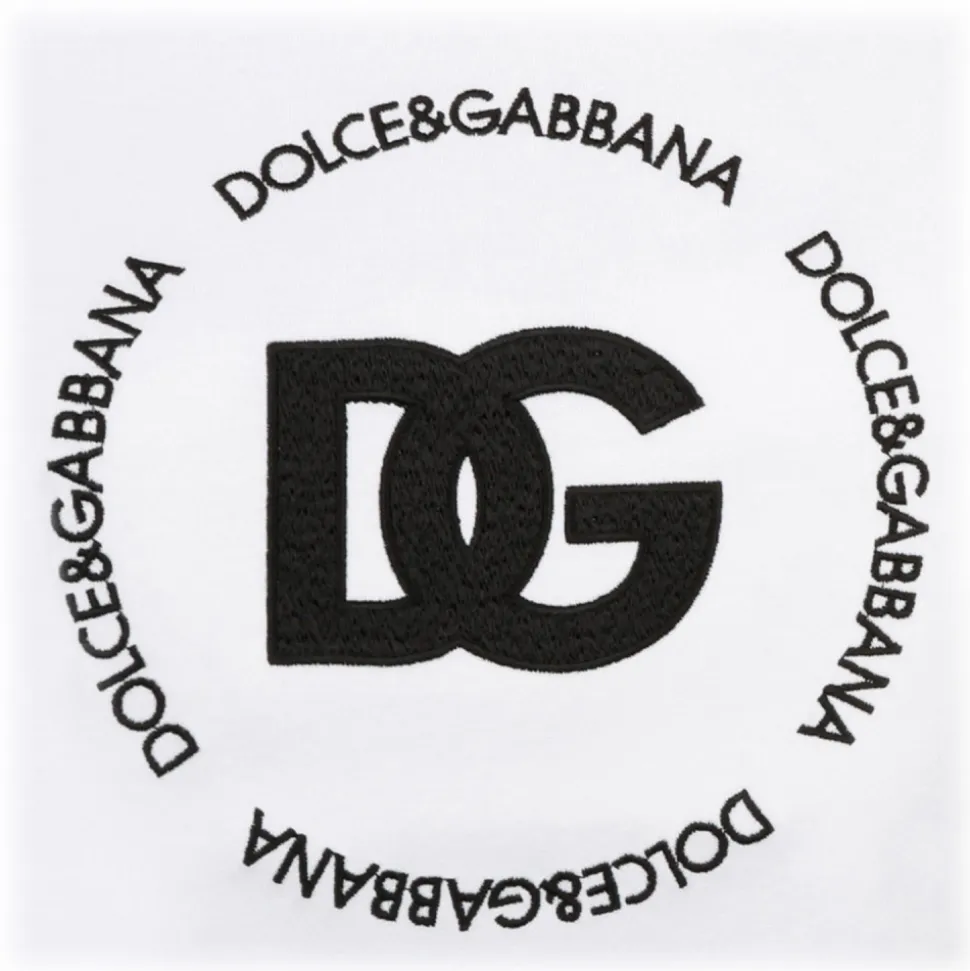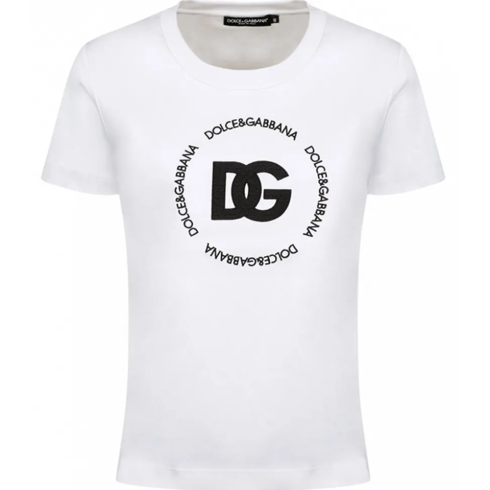 Dolce & Gabbana White Cotton T-shirt With DG Logo. Embroidered black logo. Short sleeves, round neckline.