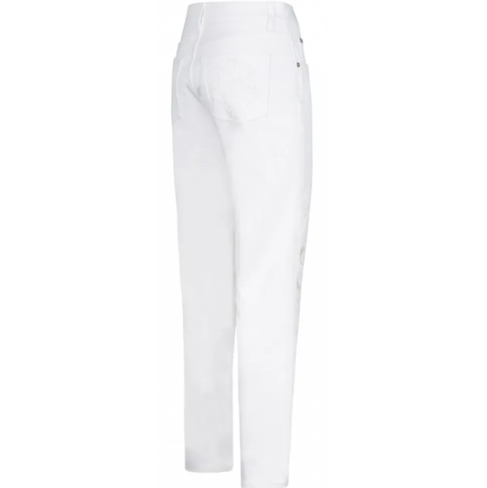 Dolce & Gabbana White Lace Detail Trousers. White cotton blend lace detail trousers, straight leg. Front button and zip fastening, classic five pockets.