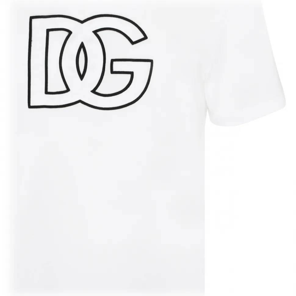 Dolce & Gabbana White Cotton Logo Monogram Print T-Shirt. White cotton t-shirt, signature DG monogram print, short sleeves, drop shoulder, crew neck, straight hem.