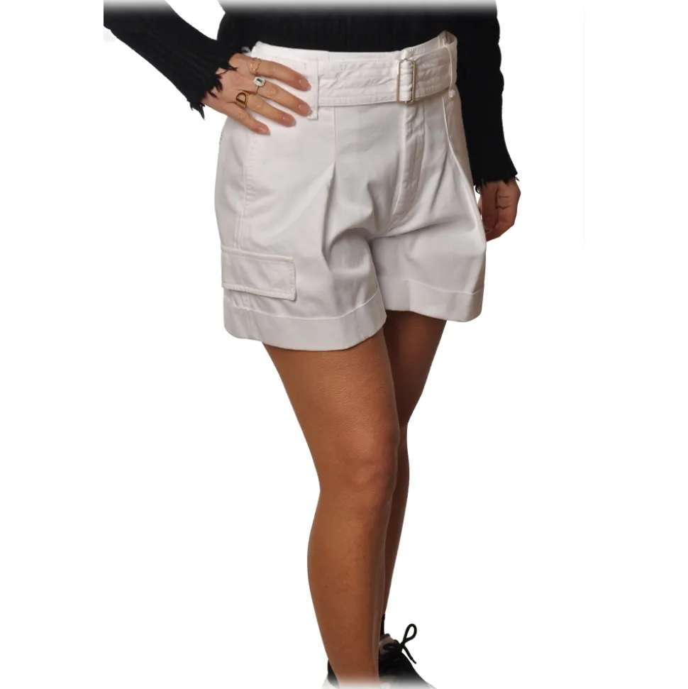 Dondup – High-Waisted Shorts with Finishing Belt – White – Trousers – Luxury Exclusive Collection