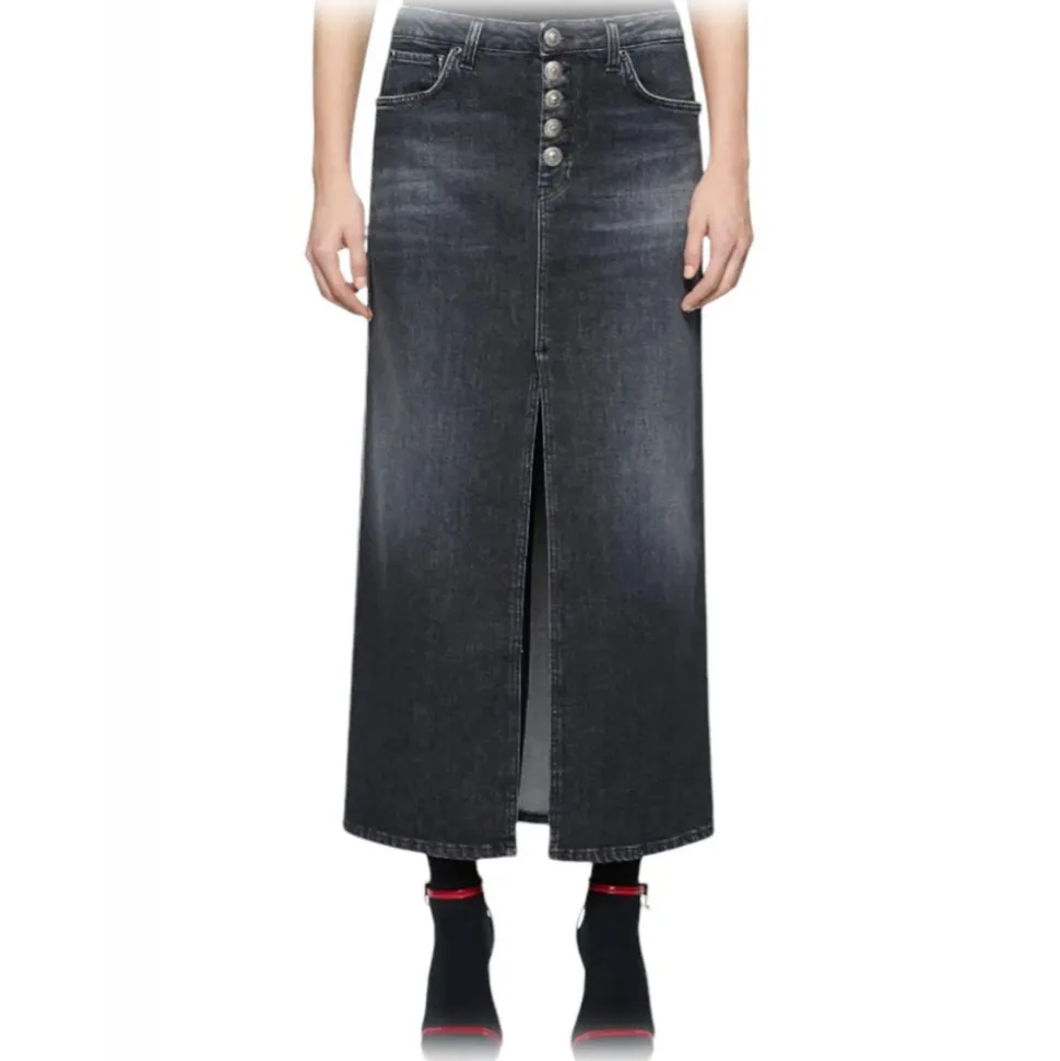 Dondup – Long Denim Skirt with Jewel Buttons – Black – Skirt – Trousers – Luxury Exclusive Collection