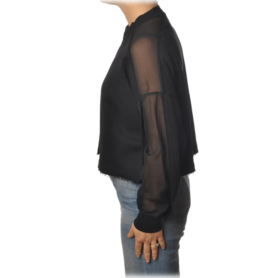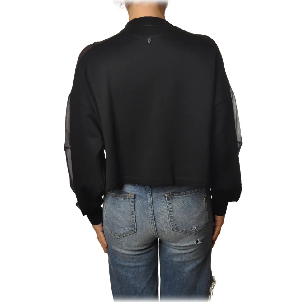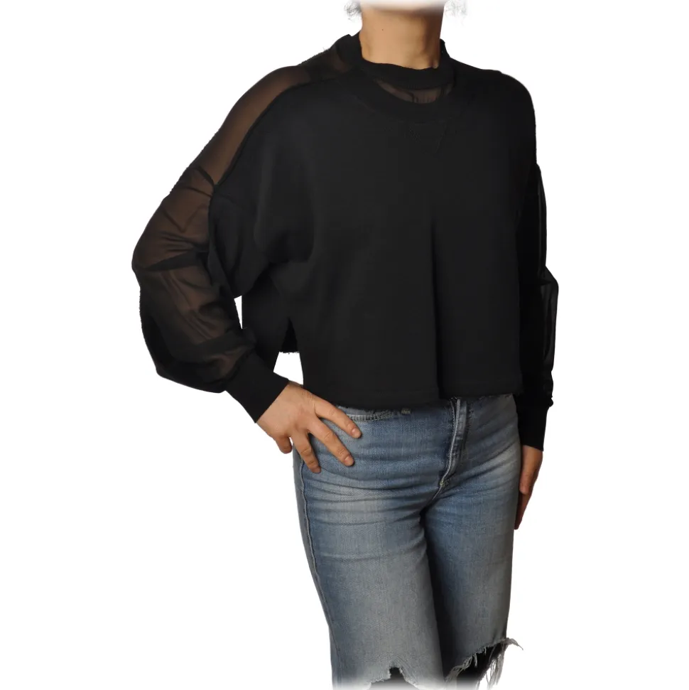 Dondup – Long-Sleeved Crewneck with Insert – Black – Sweatshirt – Luxury Exclusive Collection
