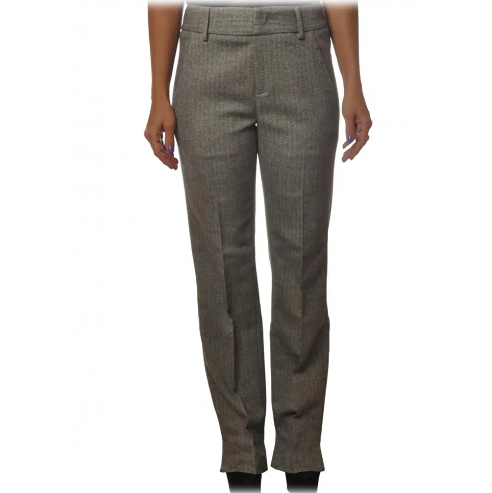 Dondup – Model Egle Pants in Herringbone Pattern – Grey – Trousers – Luxury Exclusive Collection