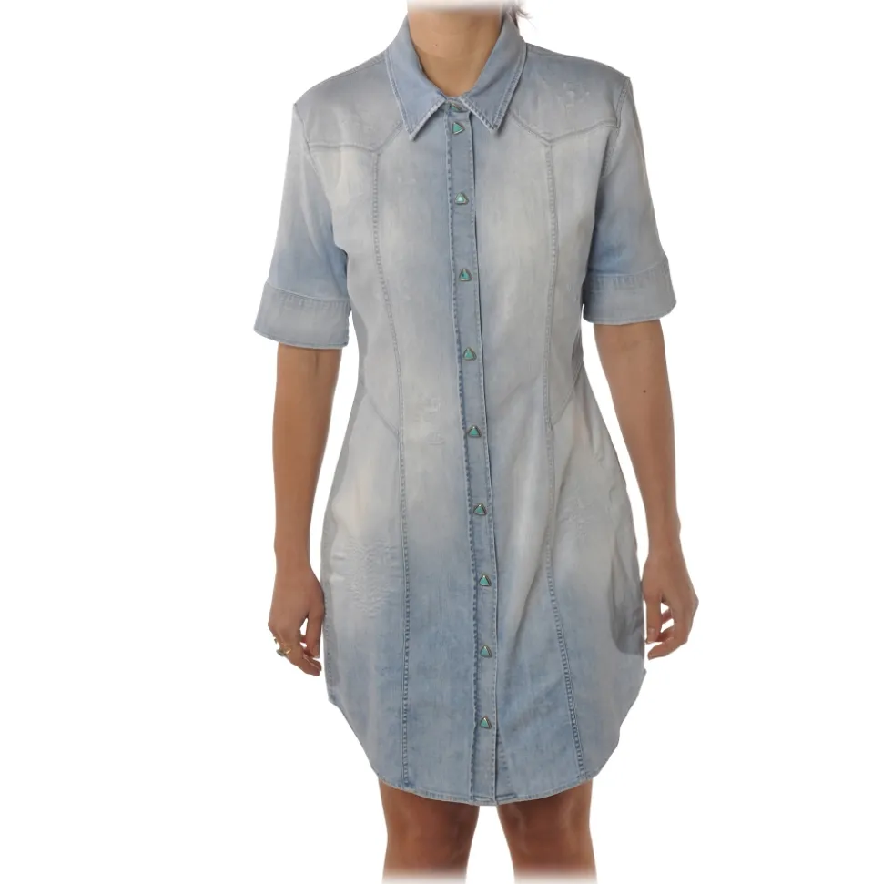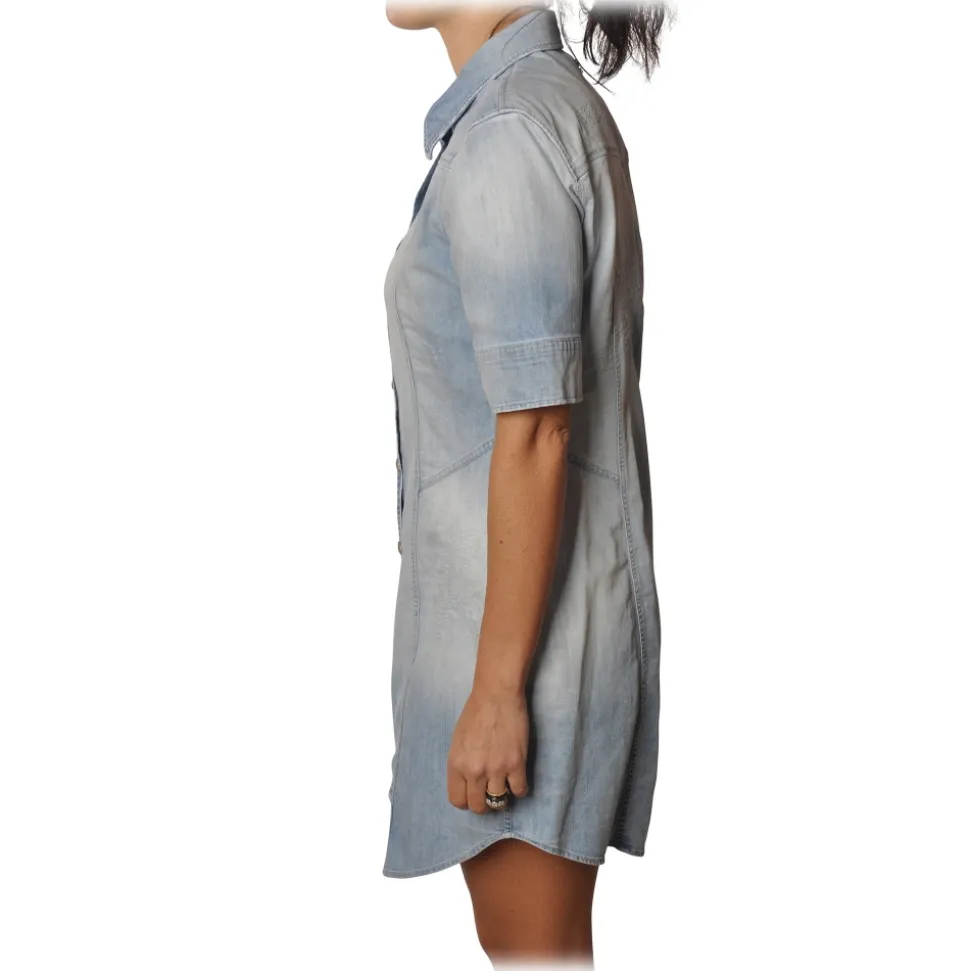 Dondup – Short-Sleeves Shirt Model with Collar – Blue Denim – Dresses – Luxury Exclusive Collection
