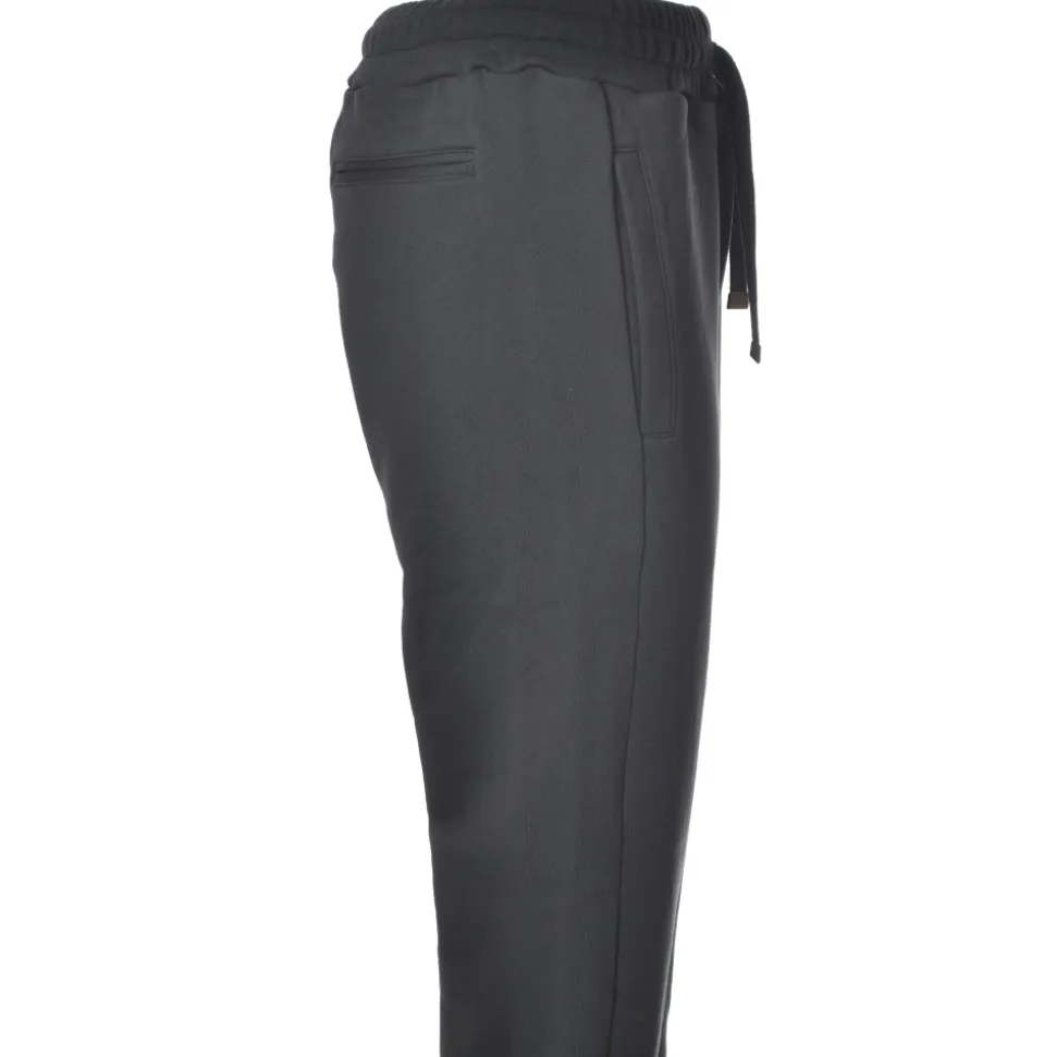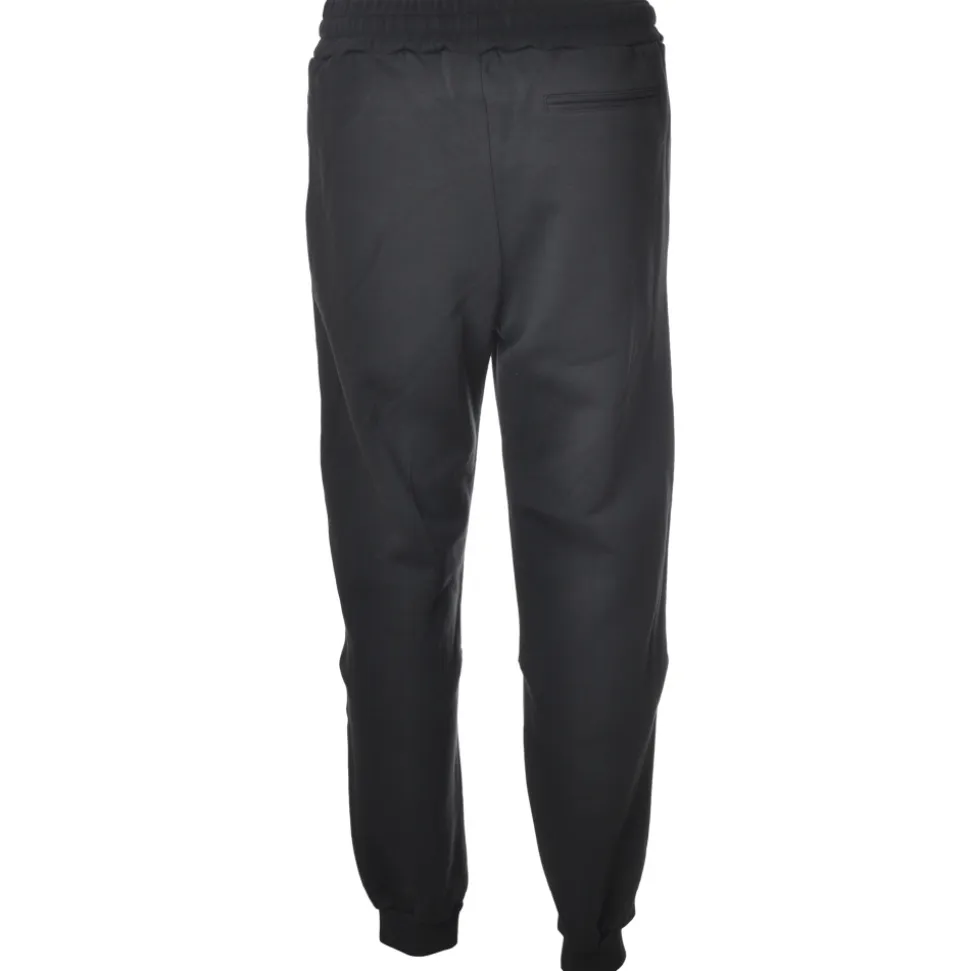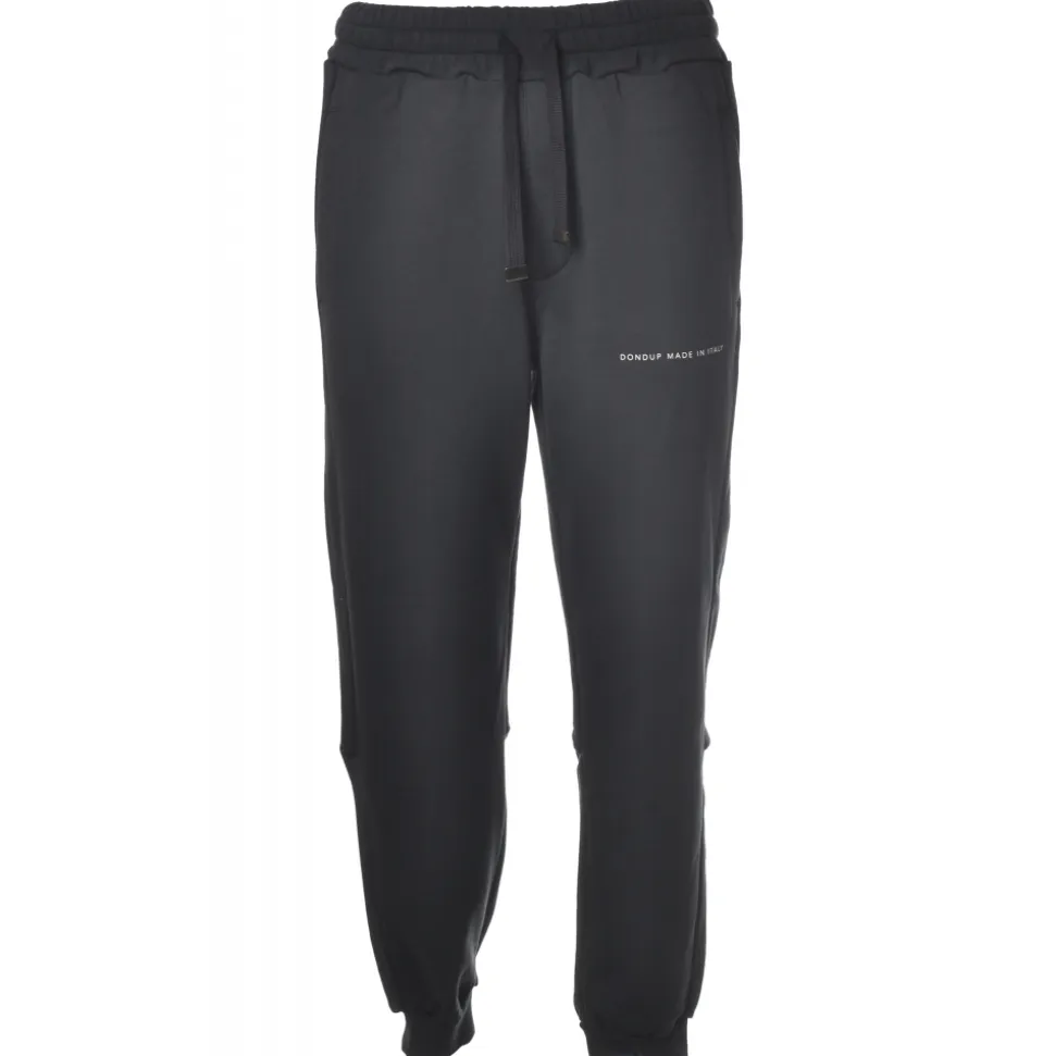 Dondup trousers, sporty model with elastic waistband and tapered legs with cuff on the bottom, welt pockets, logo on one side, made in contrasting color.