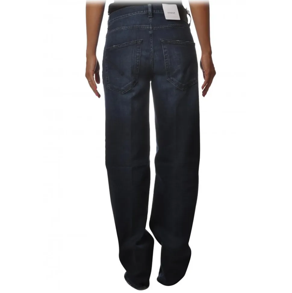 Dondup jeans, five-pocket model with high waist, with straight leg in very dark denim canvas.