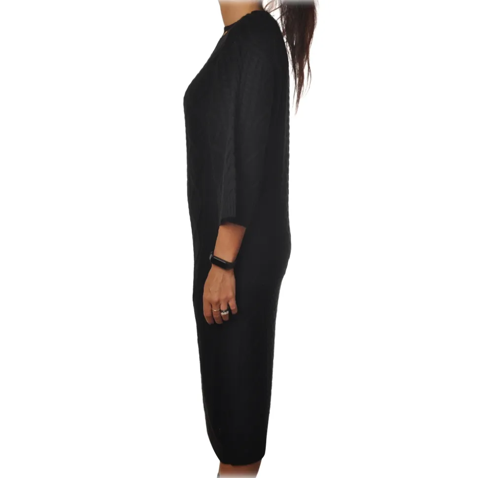 Elisabetta Franchi – 3/4 Long Sleeve Crew-Neck – Black – Dress – Made in Italy – Luxury Exclusive Collection