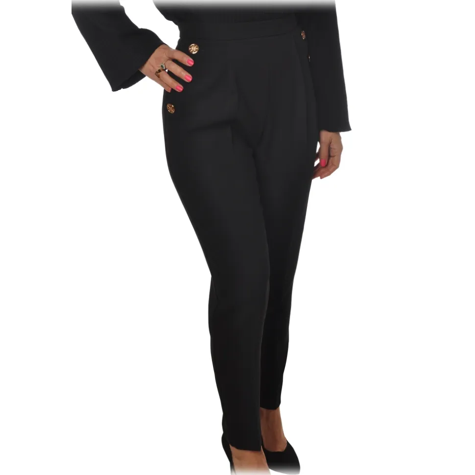 Elisabetta Franchi – Regular Waist Model with Zip – Black – Trousers – Made in Italy – Luxury Exclusive Collection