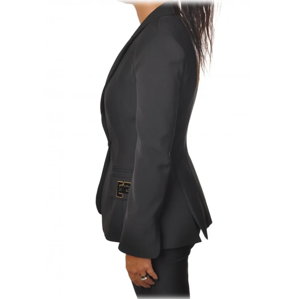 Elisabetta Franchi – Screwed Model Jacket with Logo Detail – Black – Jacket – Made in Italy – Luxury Exclusive Collection