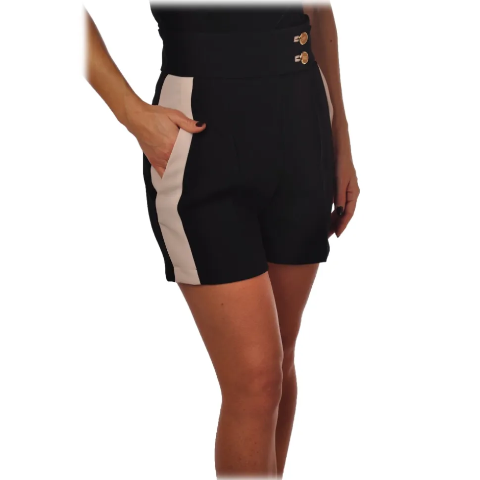 Elisabetta Franchi – Shorts with Band in Contrast – Black – Trousers – Made in Italy – Luxury Exclusive Collection