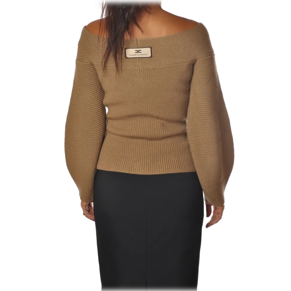 Elisabetta Franchi – Wide Sleeve Sweater – Camel – Sweater – Made in Italy – Luxury Exclusive Collection