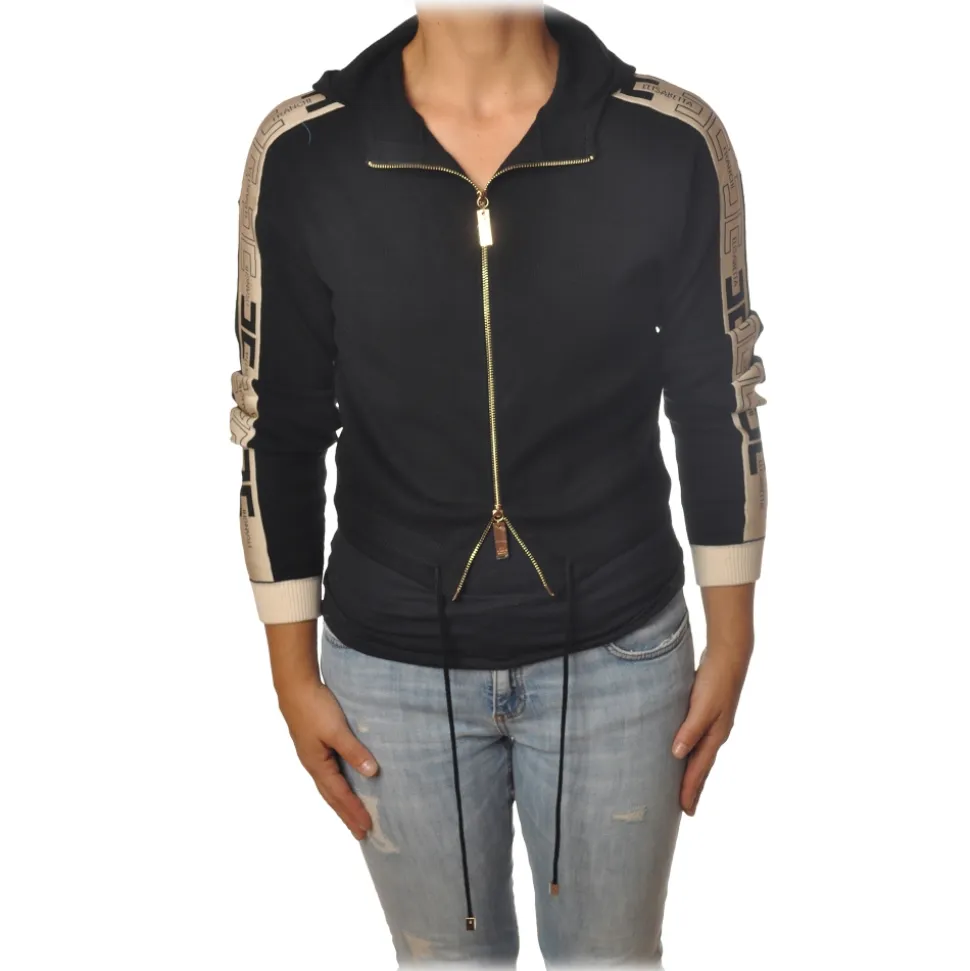 Elisabetta Franchi – Sweatshirt with Logo Profiled Bands – Black – Sweatshirt – Made in Italy – Luxury Exclusive Collection