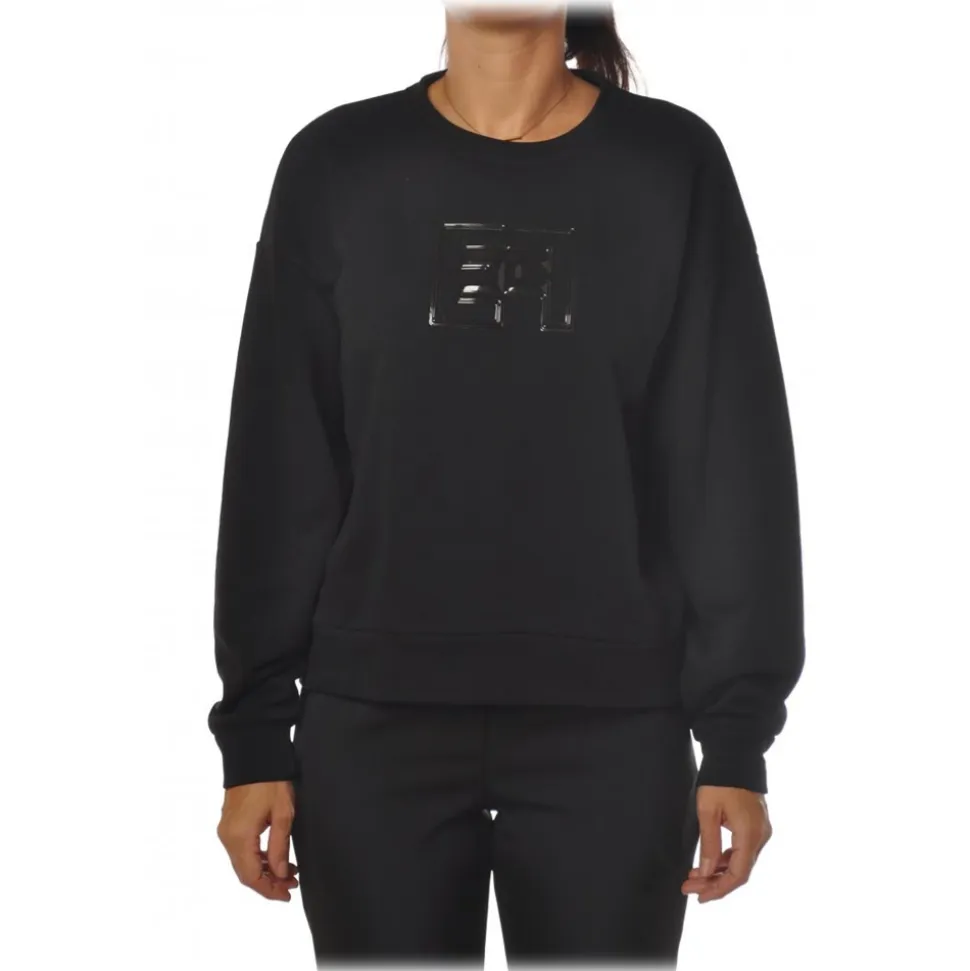 Elisabetta Franchi – Sweatshirt with Rubberized Logo – Black – Sweatshirt – Made in Italy – Luxury Exclusive Collection