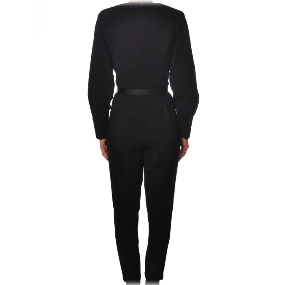 Elisabetta Franchi – V-neckline Jumpsuit with Belt – Black – Dress – Made in Italy – Luxury Exclusive Collection
