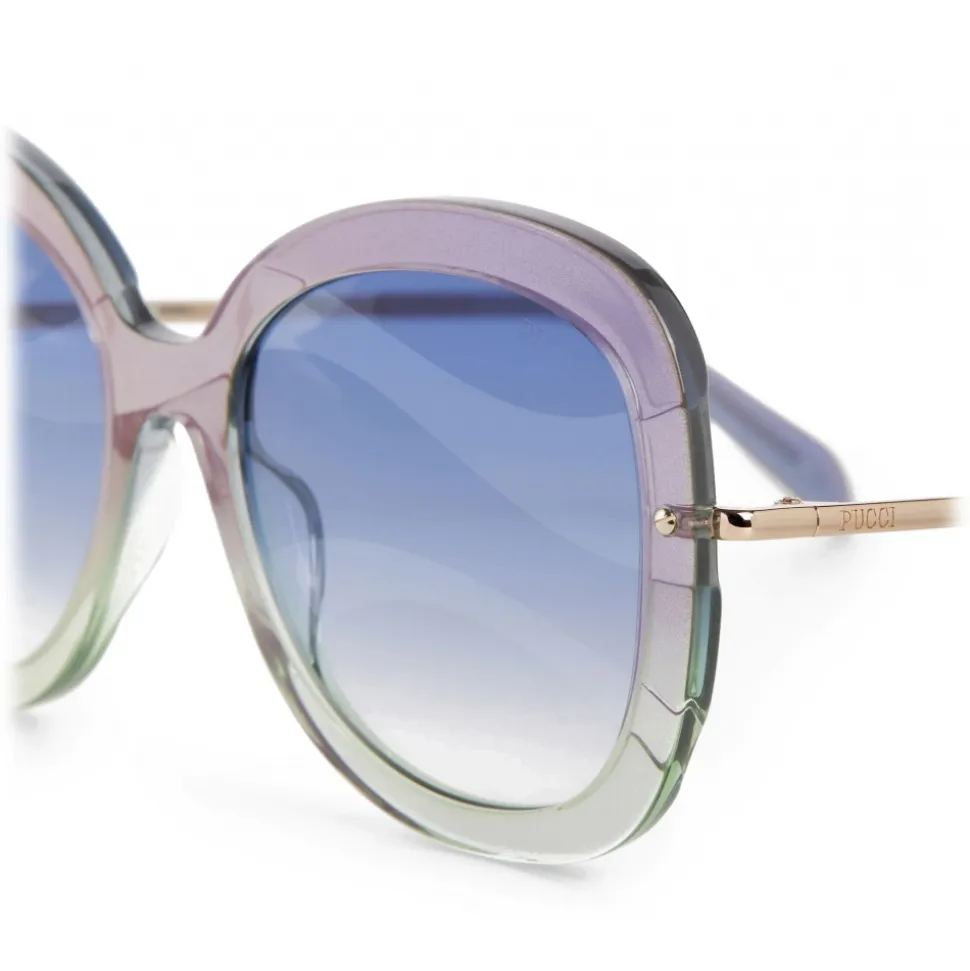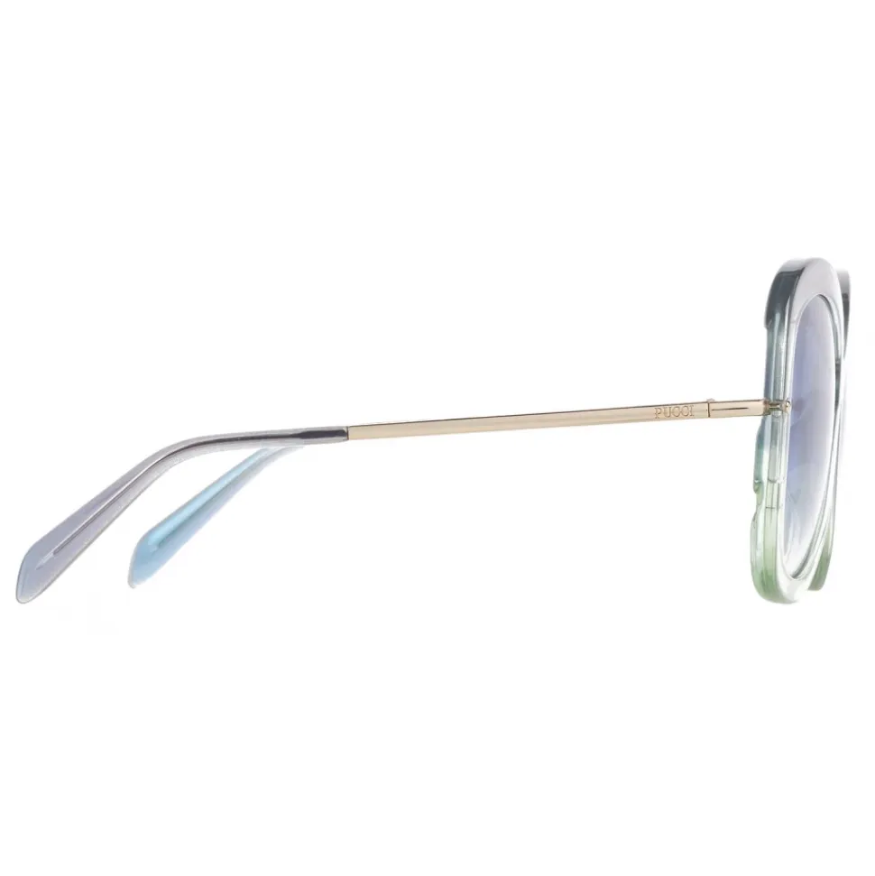 These sunglasses are crafted in an oceanic, tonal blue palette with striking butterfly-shaped frames. The glitter finish and mirrored wave-effect gradient lenses add a flourish of signature Pucci glamour.