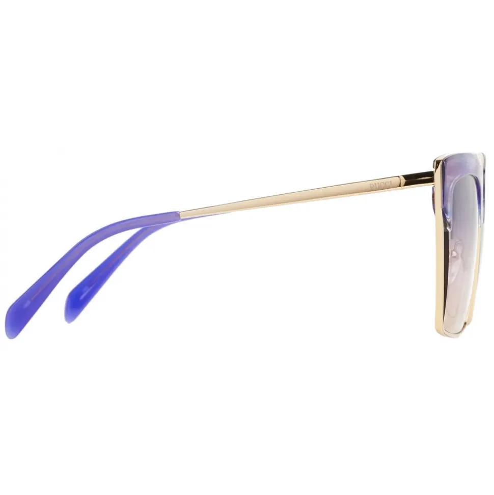 Inspired by vintage design, these square frame sunglasses are decorated with rich blue and purple tones. These colours are echoed by purple acetate end-tips.
