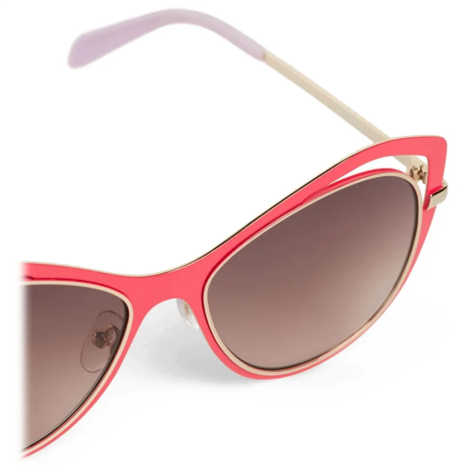 Agelessly cool and undeniably chic, these elegant sunglasses are inspired by retro style. The gradient lenses are enveloped in a vibrant pink frame with cut-out details that elegantly elongate the shape.