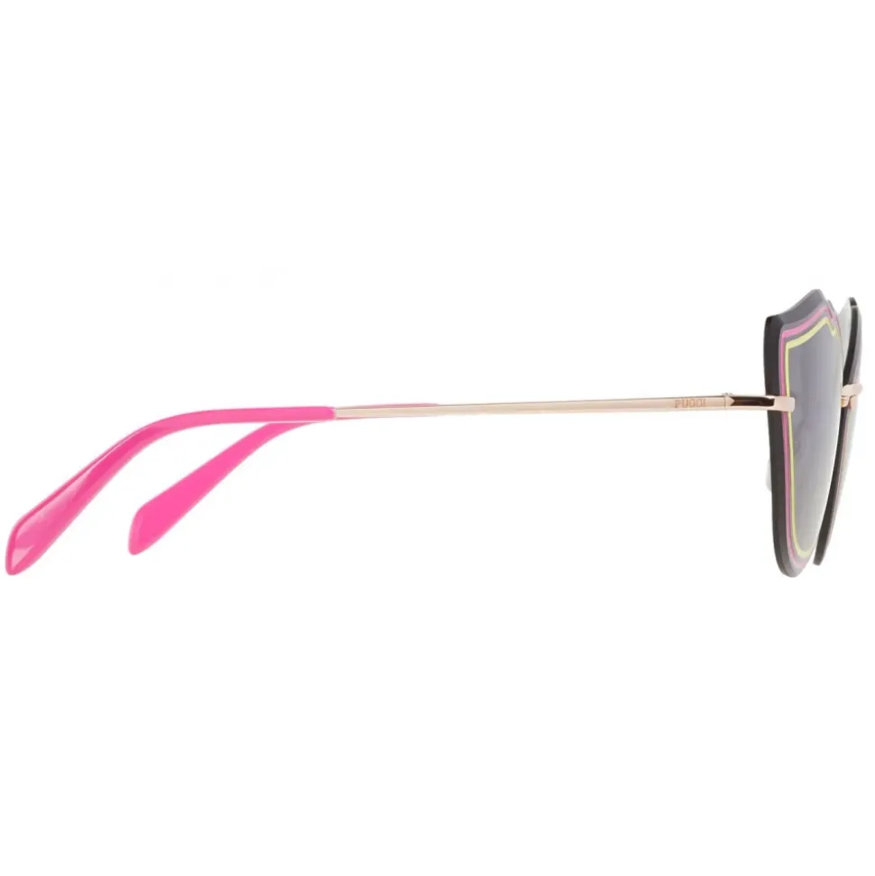 The bold flick of these butterfly shape sunglasses is enhanced by the vibrant pink and yellow enamel outline. The playful colours are beautifully grounded by the slender gold-tone frame.