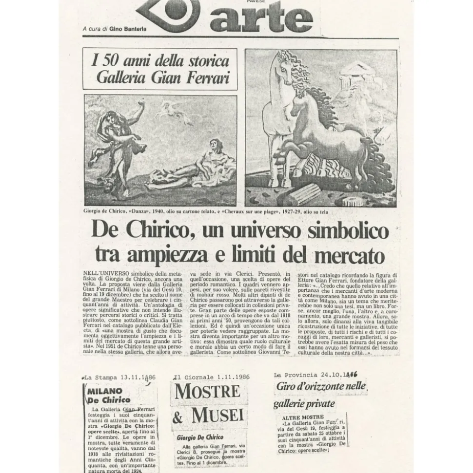 We mainly deal with works by very important historicized artists of the 20th century including Fontana, Morandi, G. De Chirico, Savinio, Castellani, Burri, Balla, Boccioni, Pistoletto, Marini, Pomodoro, Manzoni, Boetti, Kunellis, Albers, Chagall, Magritte, Brancusi, Picasso, Modigliani, Mirò, Dalì, Kandisky, Andy Warhol, J. Schnabel, G. Richter, Botero, V De Kooning, Hirsch, Pollock, etc …