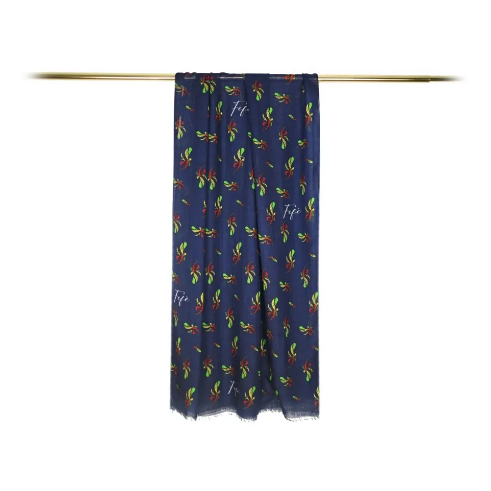 Fefè Napoli – Blue Ace of Sticks Scaramantia Wool Scarf – Scarves and Foulards – Handmade in Italy – Luxury Exclusive Collection