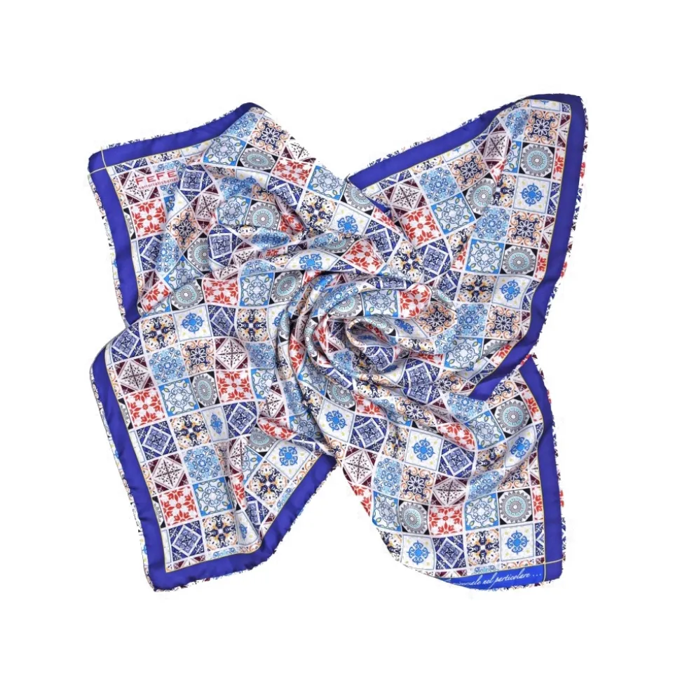Fefè Napoli – Blue Azulejo Silk Foulard – Scarves and Foulards – Handmade in Italy – Luxury Exclusive Collection
