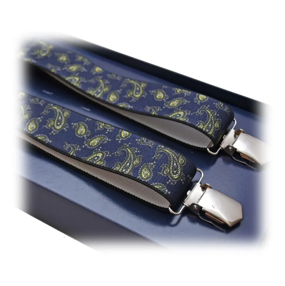 Fefè Napoli – Blue Cash Gentleman Suspenders – Braces – Handmade in Italy – Luxury Exclusive Collection