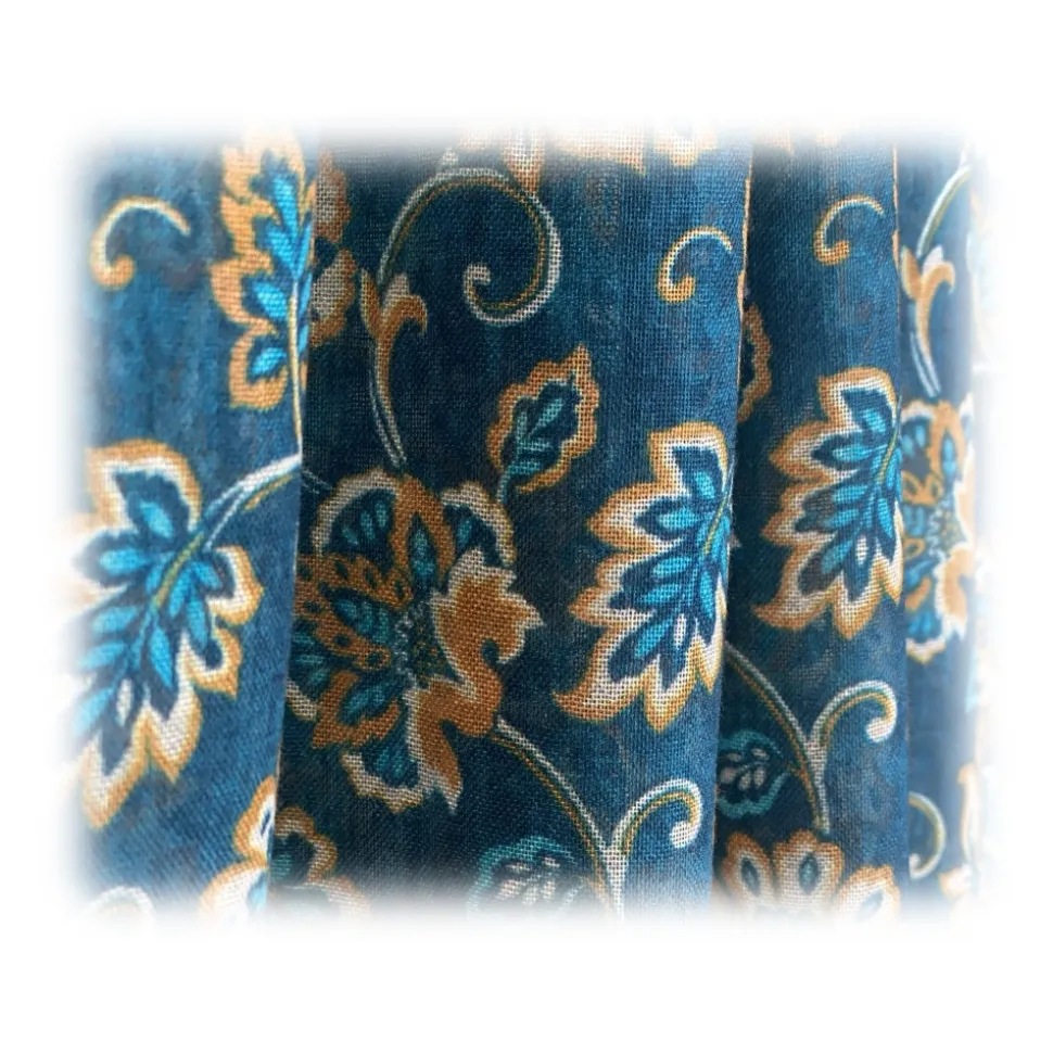 Fefè Napoli – Blue Flowers Wool Dandy Scarf – Scarves and Foulards – Handmade in Italy – Luxury Exclusive Collection