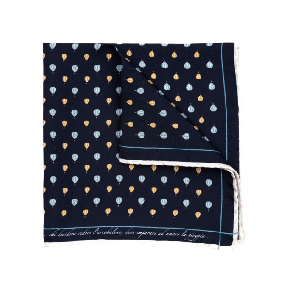 Fefè Napoli – Blue Hot Air Balloon Silk Dandy Pocket Square – Pocket-Square – Handmade in Italy – Luxury Exclusive Collection