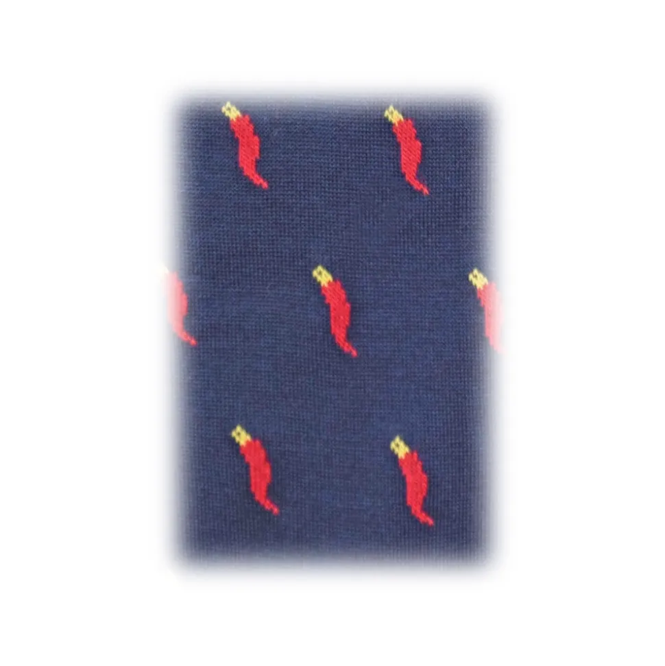 Fefè Napoli – Blue Lucky Horns Scaramantia Men’s Socks – Socks – Handmade in Italy – Luxury Exclusive Collection