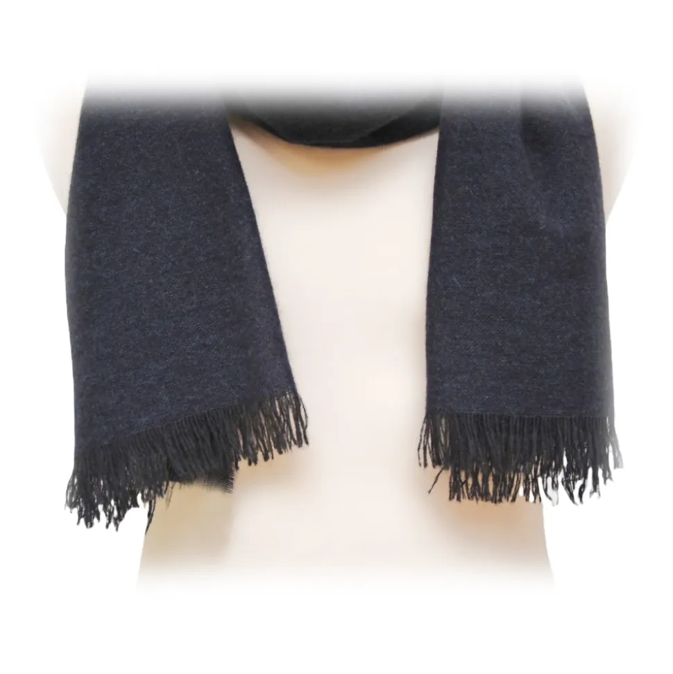 Fefè Napoli – Blue Navy Cashmere Elegance Scarf – Scarves and Foulards – Handmade in Italy – Luxury Exclusive Collection