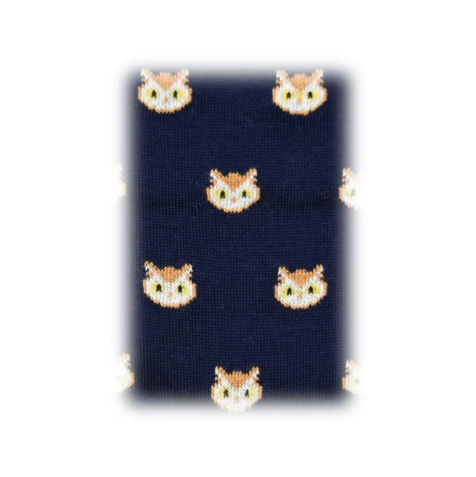 Fefè Napoli – Blue Owls Scaramantia Men’s Socks – Socks – Handmade in Italy – Luxury Exclusive Collection