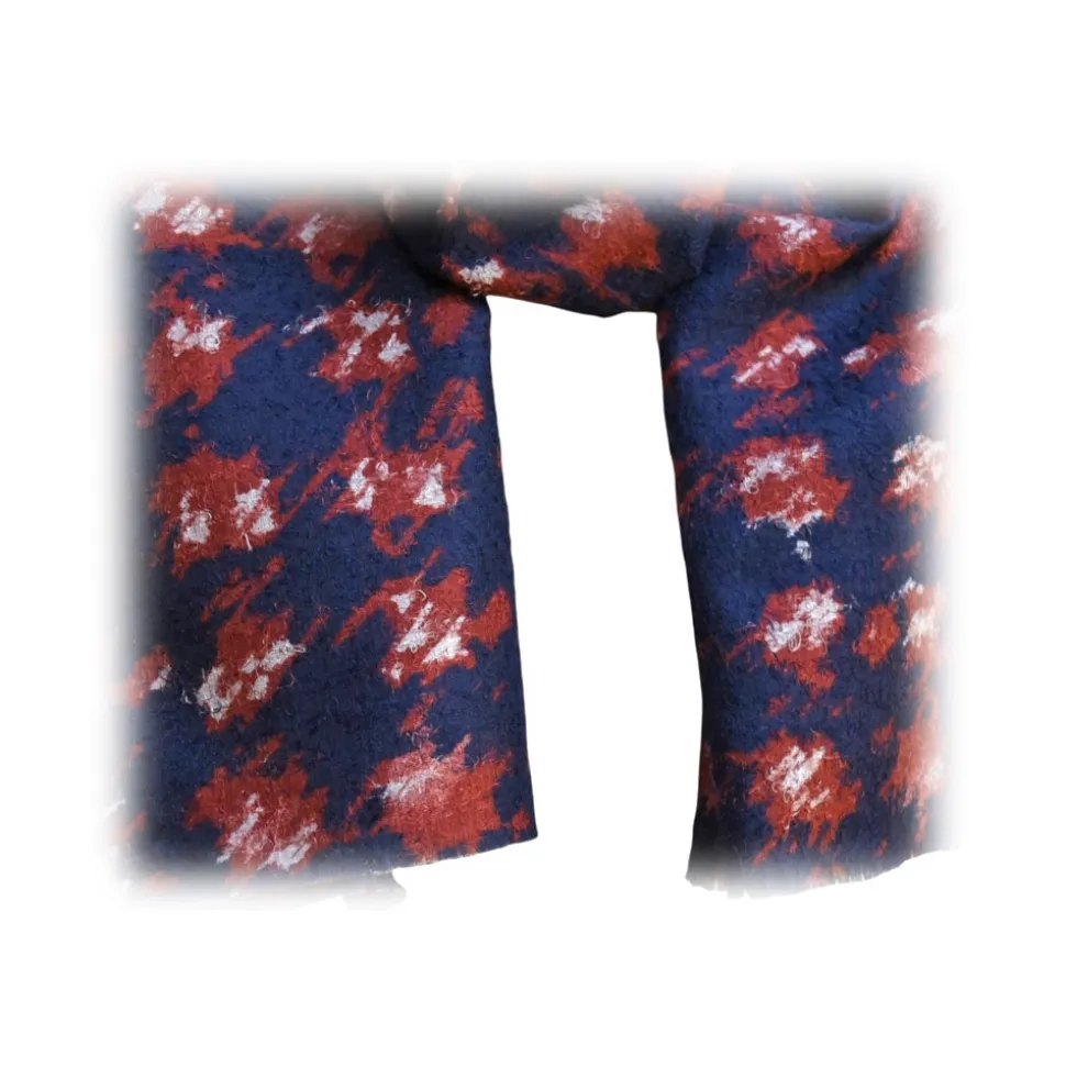 Fefè Napoli – Blue Pied De Poule Dandy Silk Scarf – Scarves and Foulards – Handmade in Italy – Luxury Exclusive Collection