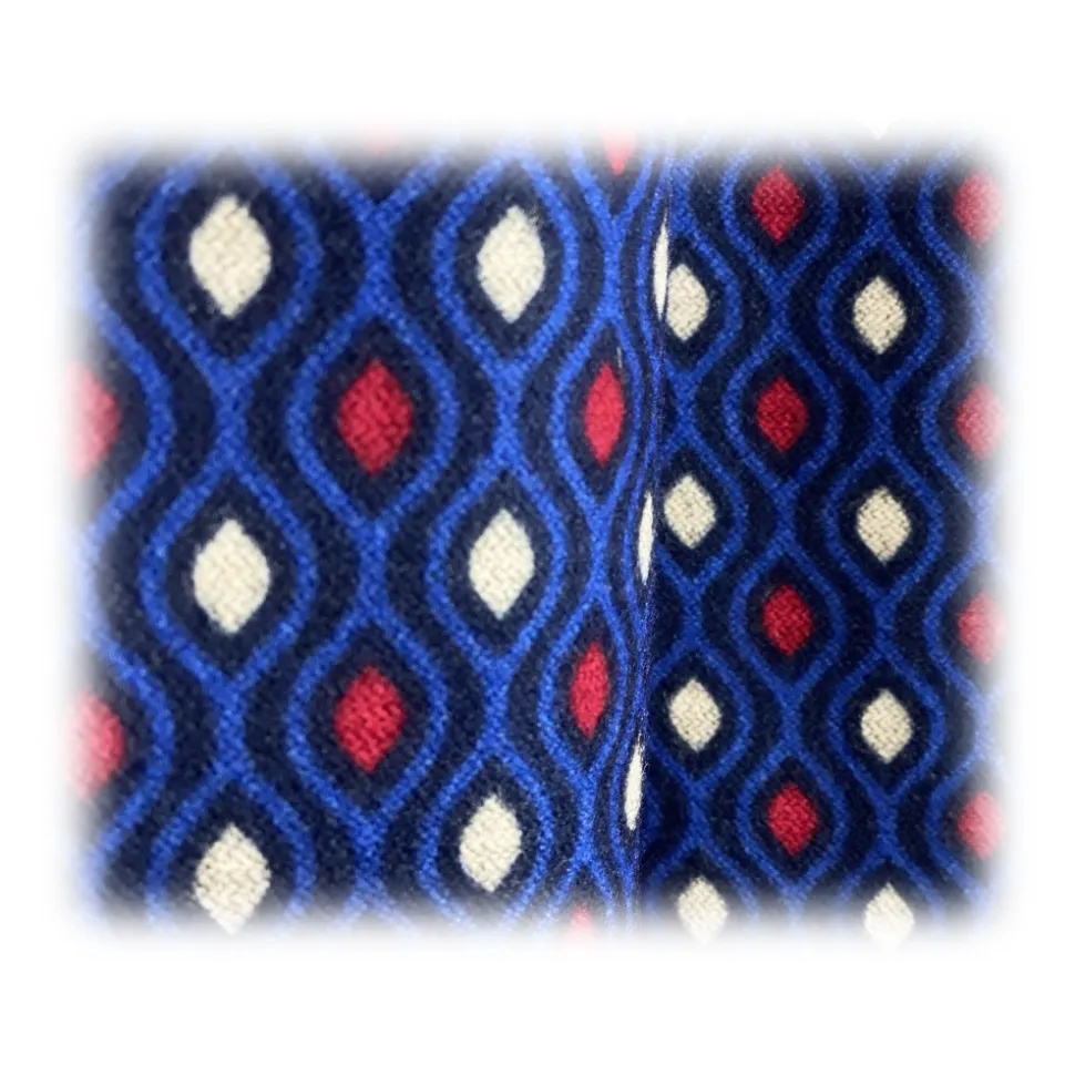 Fefè Napoli – Blue Pois Double Dandy Silk Scarf – Scarves and Foulards – Handmade in Italy – Luxury Exclusive Collection