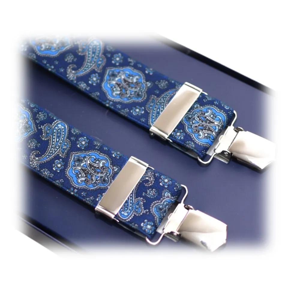 Fefè Napoli – Blue Royal Cash Gentleman Suspenders – Braces – Handmade in Italy – Luxury Exclusive Collection