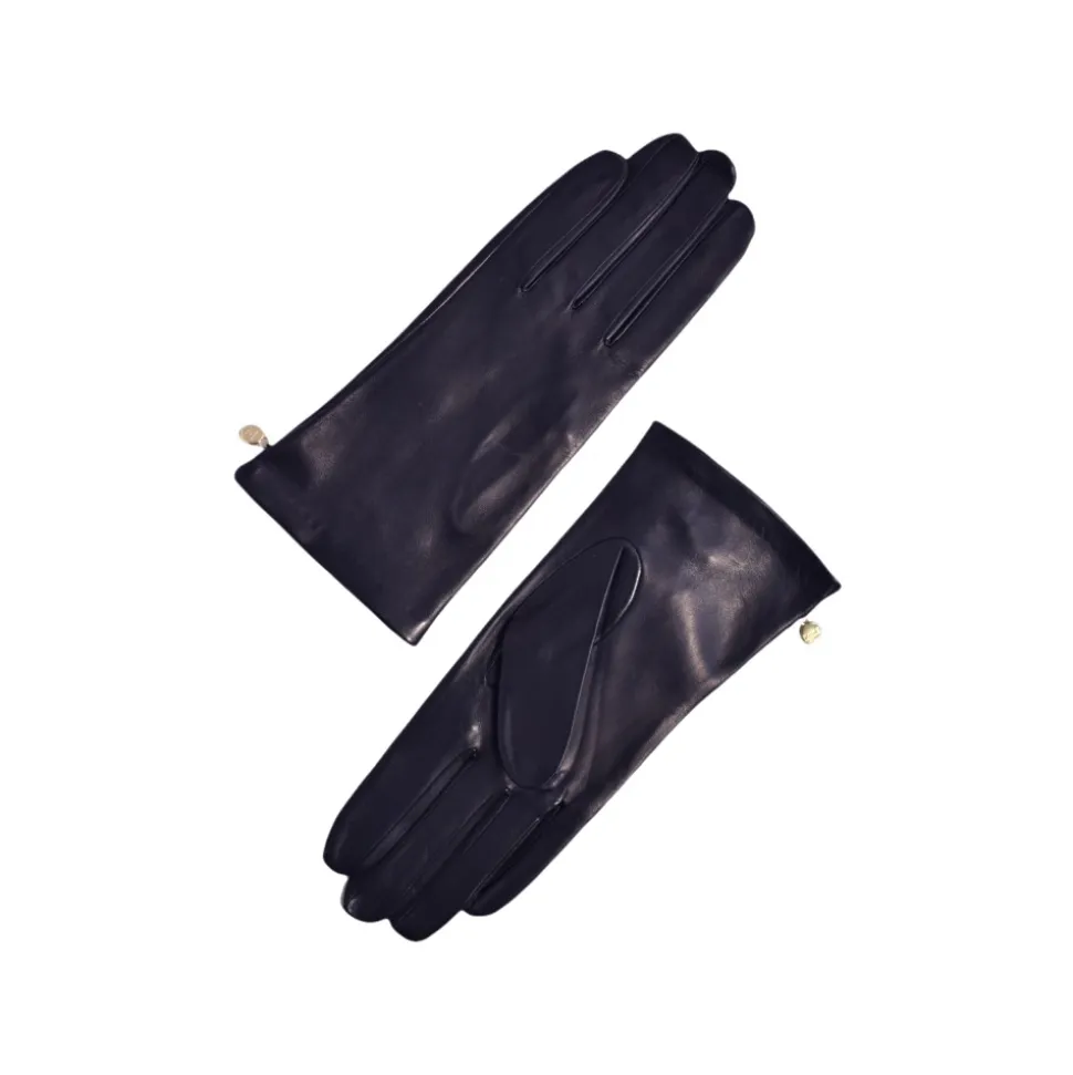 Fefè Napoli – Dark Blue Leather Woman Gloves – Gloves – Handmade in Italy – Luxury Exclusive Collection