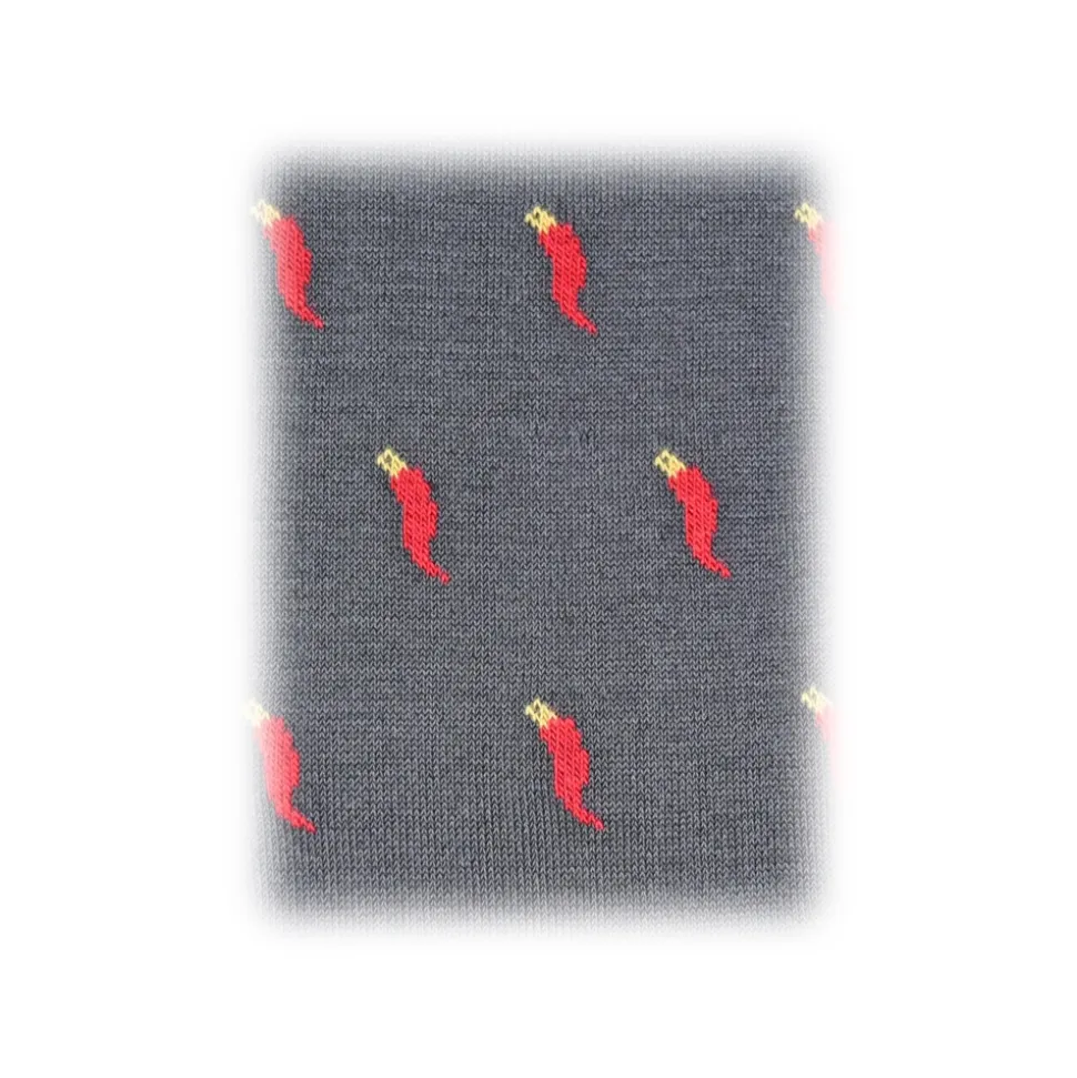 Fefè Napoli – Grey Lucky Horns Scaramantia Men’s Socks – Socks – Handmade in Italy – Luxury Exclusive Collection