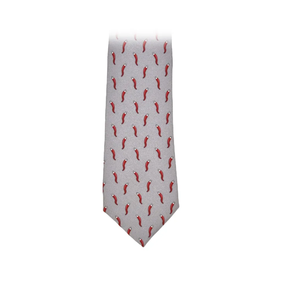 Fefè Napoli – Grey Lucky Horns Scaramantia Silk Tie – Ties – Handmade in Italy – Luxury Exclusive Collection