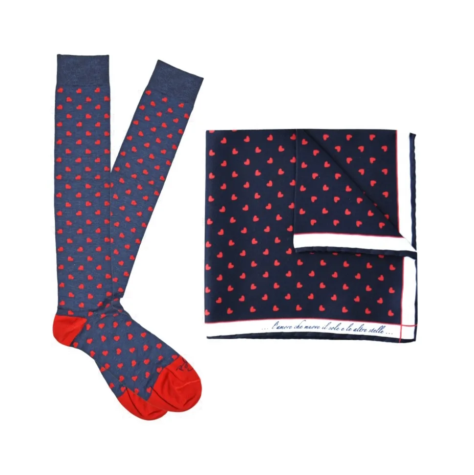 The Gift Box is the perfect gift idea: precious 100% silk pocket square entirely Made in Italy with hand-finished hem and contrasting edge coordinated with the 100% cotton long socks.