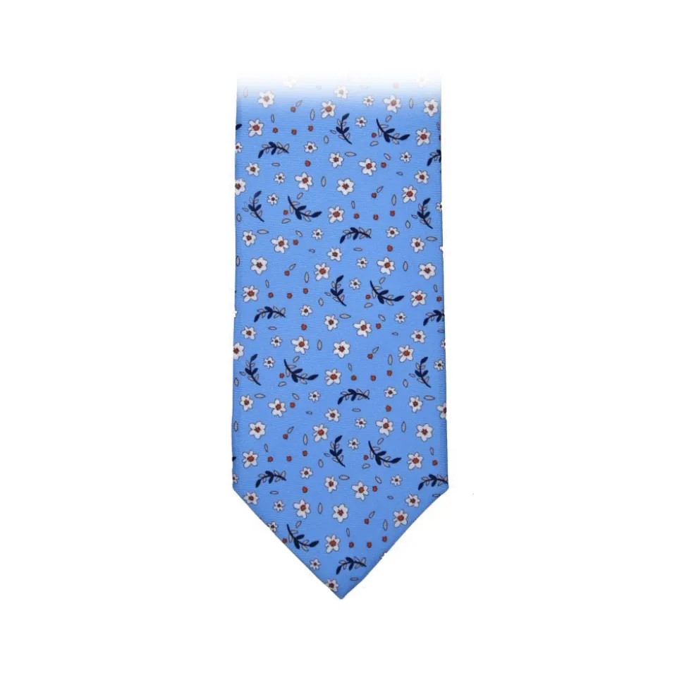 Fefè Napoli – Light-Blue Flowers Silk Tie – Ties – Handmade in Italy – Luxury Exclusive Collection