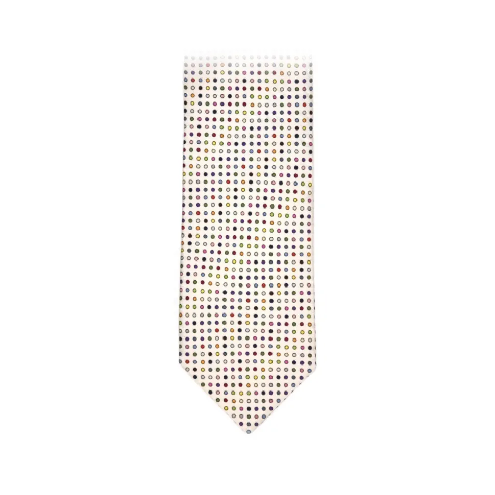 Fefè Napoli – White Multicolor Pois Gentleman Silk Tie – Ties – Handmade in Italy – Luxury Exclusive Collection