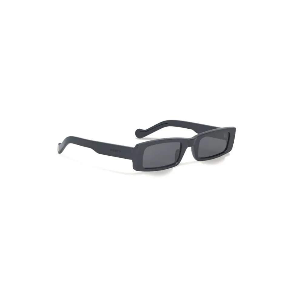 Rectangle sunglasses with rounded corners in Jet Black acetate. Featuring black tinted nylon lenses.