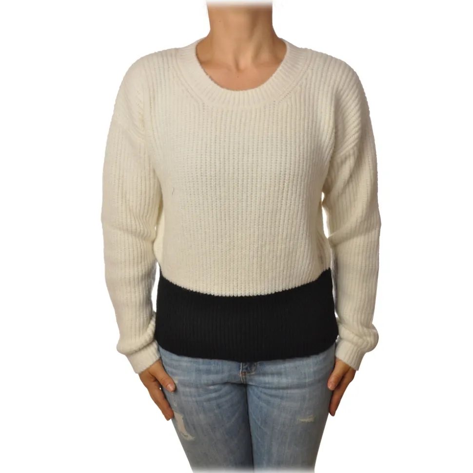 Gaëlle Paris – Crewneck Pullover with Opening on the Back – White – Sweater – Made in Italy – Luxury Exclusive Collection